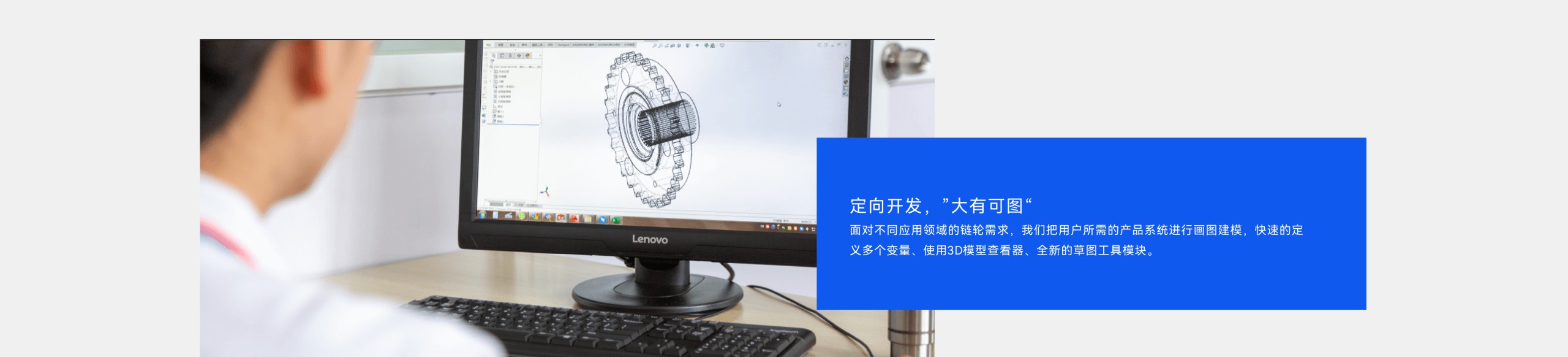 面對不同應(yīng)用領(lǐng)域的鏈輪需求,我們把用戶所需的產(chǎn)品系統(tǒng)進(jìn)行畫圖建模,快速的定義多個變量、使用3D模型查看器、全新的草圖工具模塊。