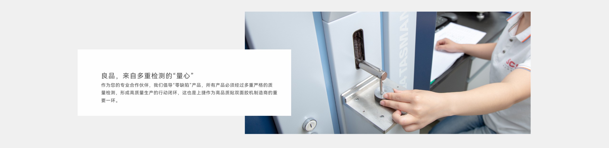 作為您的專業(yè)合作伙伴,我們倡導(dǎo)“零缺陷”產(chǎn)品,所有產(chǎn)品必須經(jīng)過多重嚴(yán)格的質(zhì)量檢測,形成高質(zhì)量生產(chǎn)的行動閉環(huán),這也是上捷作為高品質(zhì)貼雙面膠機(jī)制造商的重要一環(huán)。